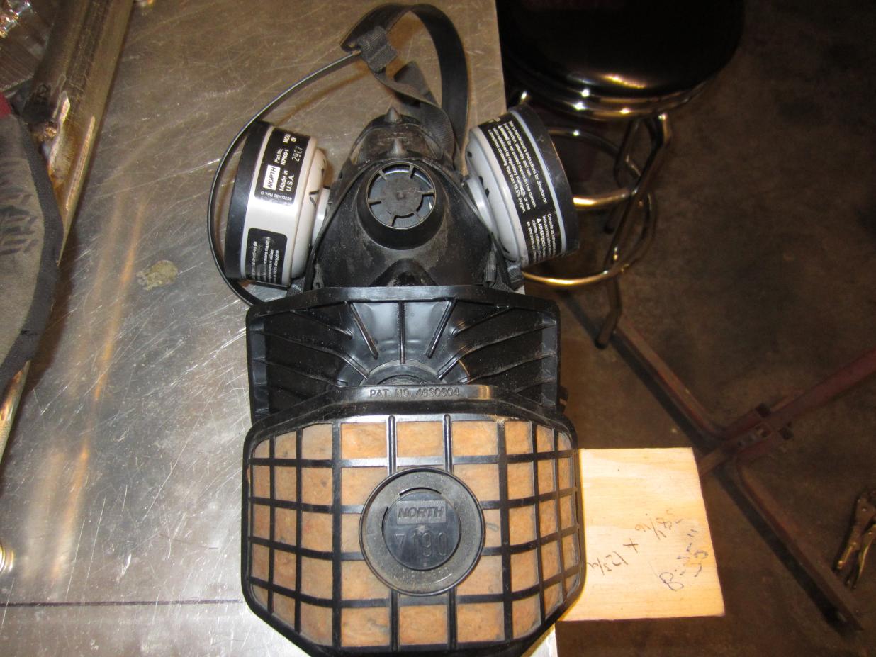 Here is your very basic welding respirator. The reason I posted the standard canister one behind it is because I have actually fit that one under my welding helmet without problems (just FYI). Even with the charcoal canisters attached I don't think it's ideal for welding though. The flat faced one in the pic is the welding respirator that my company bought me (the cheapest one they could find after I complained about getting sick all the time). It works okay for what it is and it fits my face well, but as Trip mentioned, you have to have smooth skin for a good seal.