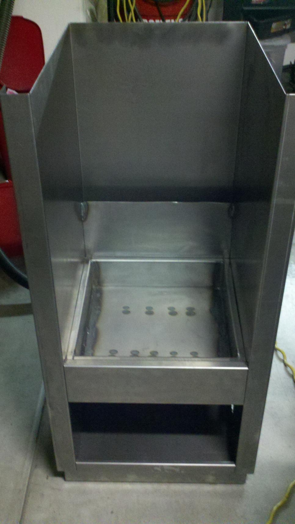 Metal fabrication was 12 gage for the water pan, 14 gage for the main part of the cook chamber, and 18 gage for the doors and sheet metal. I used the 250 EXT to tack up the project and then most welding was with my Miller 252.