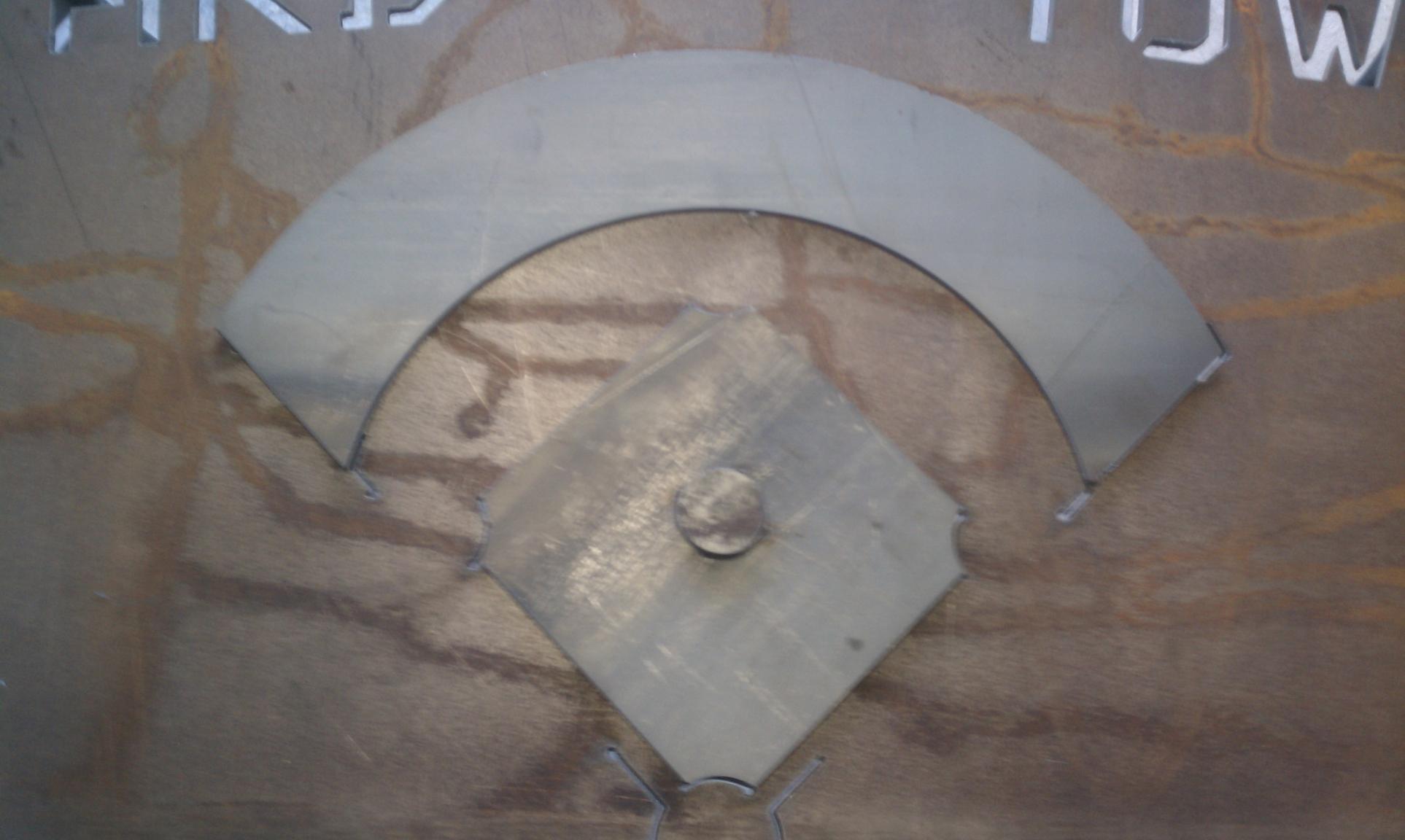 I used a W4x13 for the vertical post with 2"x2"x1/8" around the top for a seat for sign. The sign itself is made from 3/16" steel. It was cut on a CNC burn table using the PP50 and welded together with the I-Mig200.