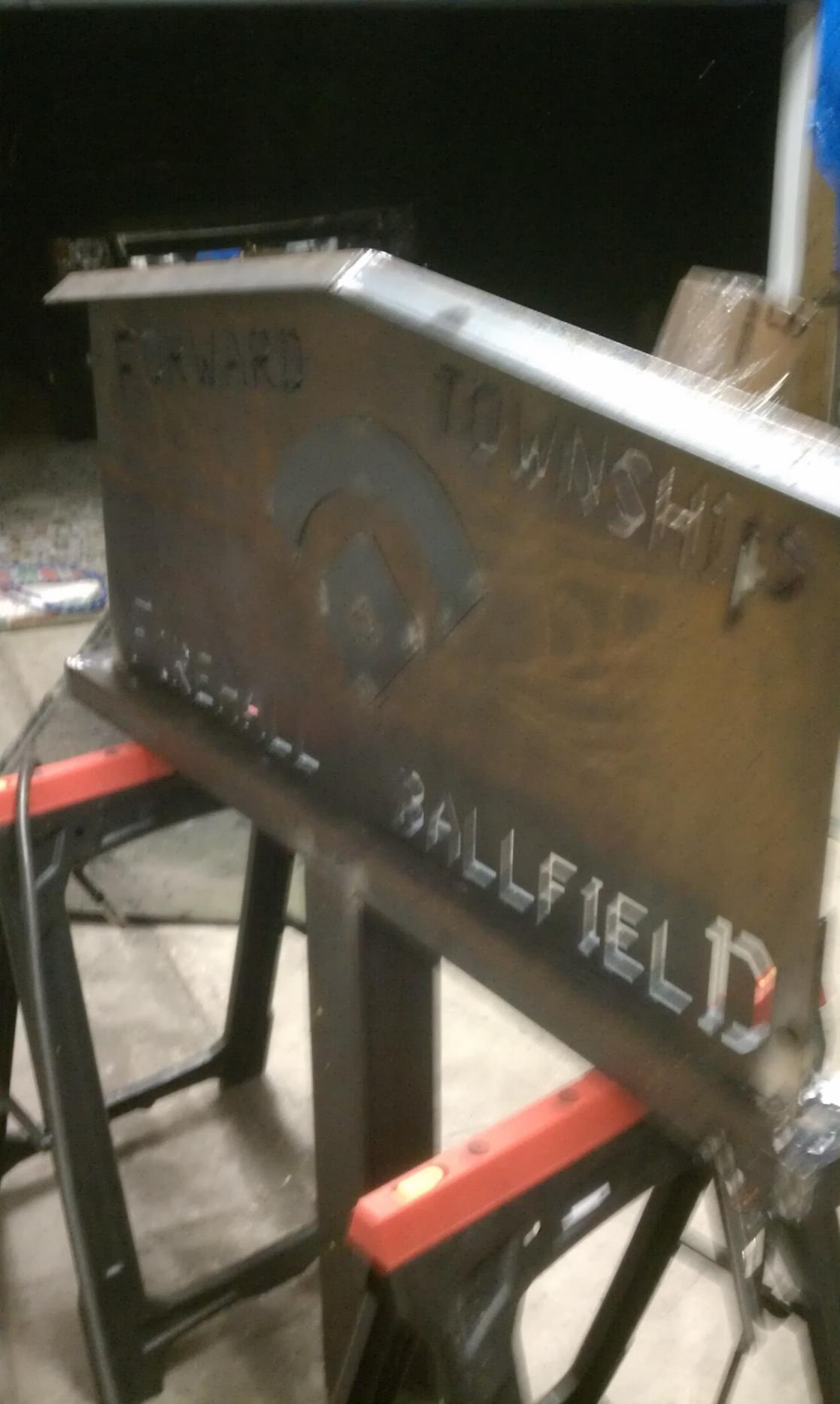 I had some extra steel laying around from past jobs so I thought I would wip something together for a new sign for the baseball field. Here are some pictures.