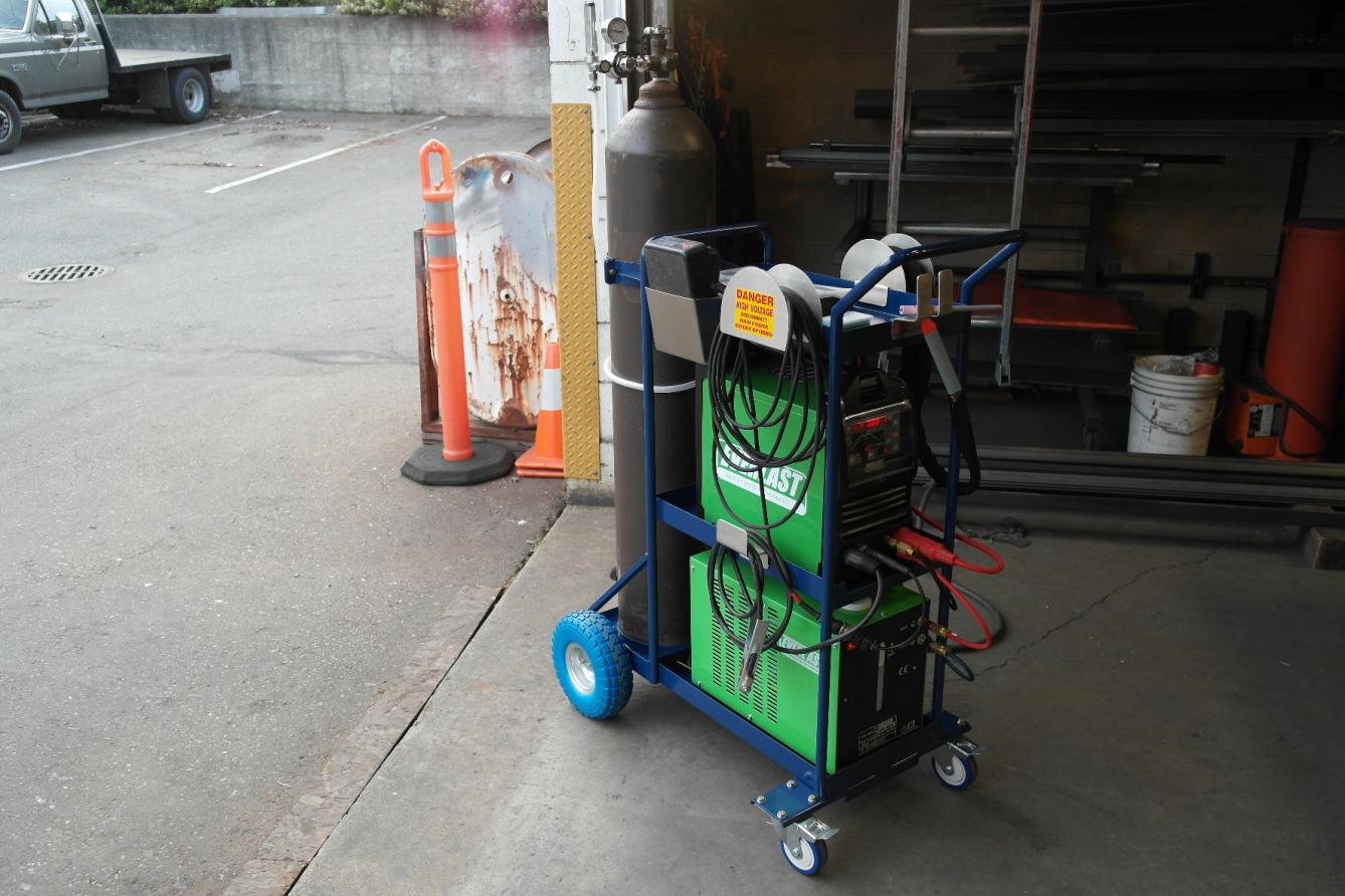 It looks like you have it all setup and decked out to your liking. I like the cart matching blue wheels. Is that short pigtail just so you can get power for the cooler?
