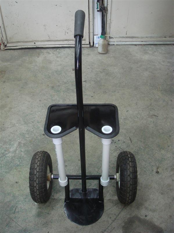 I've been thinking about a different sort of little welding cart for a while. I wanted something small that could go over rough terrain or be pulled up stairs. So I went for a two wheeled design, instead of the typical four wheeled. For compact use I have a 55 cuft. bottle, but I can go larger as well.