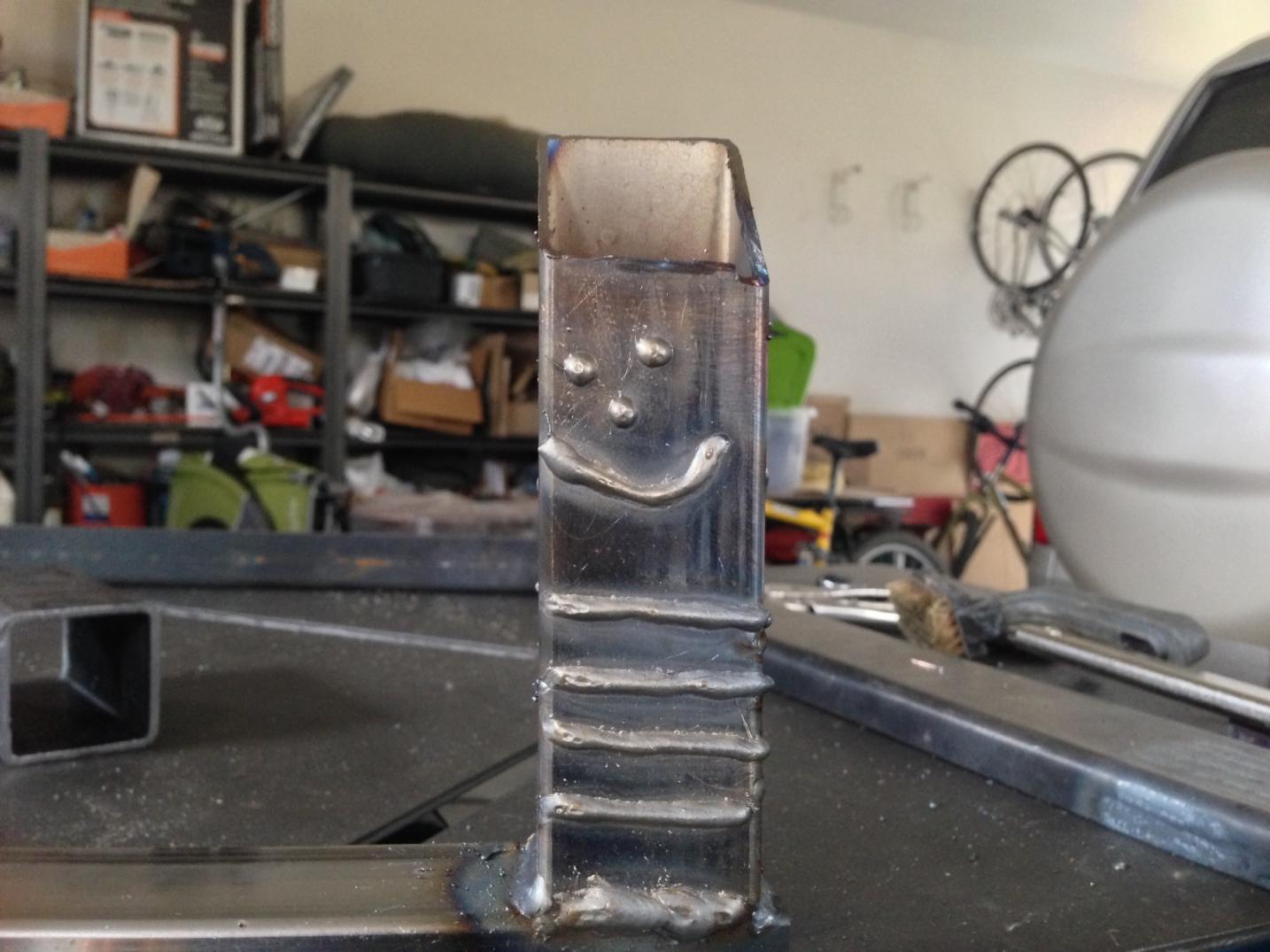 I'm heading back to the metal supply shop tomorrow to trade in my pile for a new pile. I'll ask them about that box tubing. I'll also try upping the gun speed a little bit to perhaps reduce the convex bead issue a little bit. I also have some unplated 3/8" and 1/2" REBAR so I may try some butt welds on that stuff.