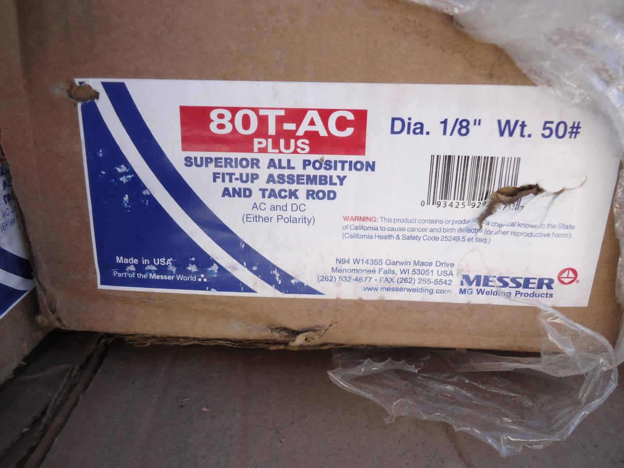 50 pound boxes Messer 80T AC Plus Welding Rod $95.00 per box shipped
