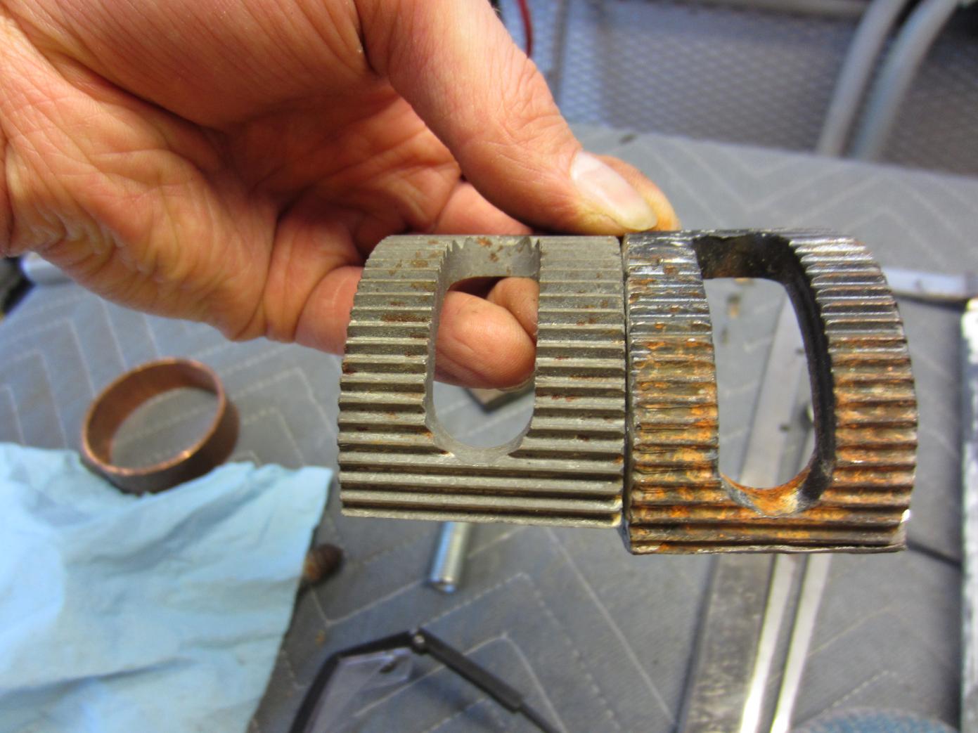 Pic 5:Notice the old adjuster on the right and the new one on the left...and notice how the adjustment slot is so much shorter than the old plates slot
