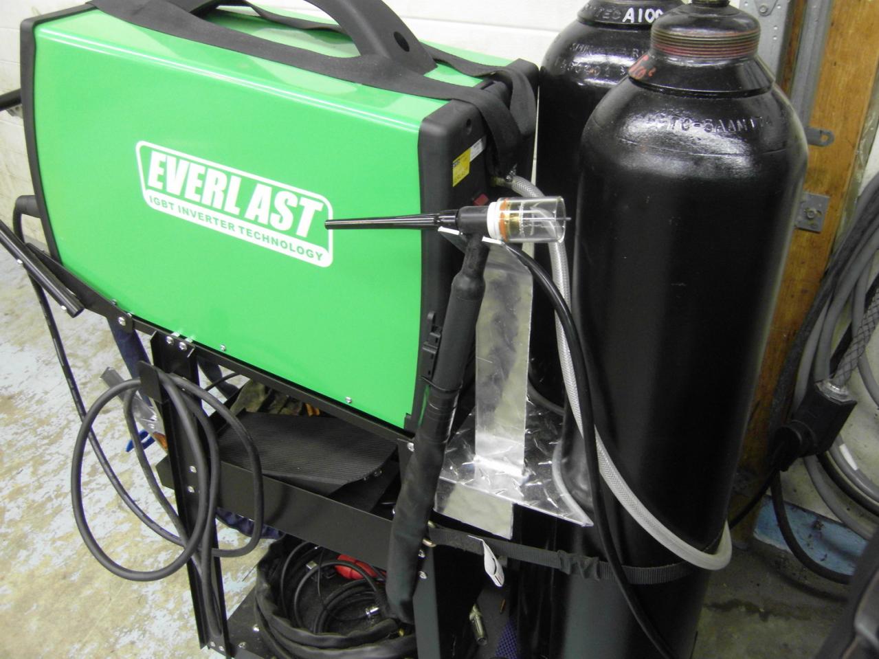 Not really. Before deciding on axle and caster locations, I made sure I could load a bottle with nothing on the shelf and that the welder was stable with the bottle removed. I can sit on the front of the upper tube and it deflects about 1/4" (I'm 175#) but the rear wheels stay on the ground.