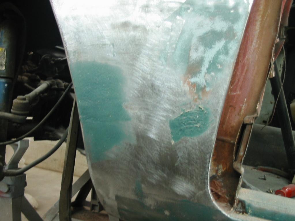 ). To top it all off, under the cheap orange paint job from the nearest discount auto paint shop during the 70's, lied some of the worst bodywork you could imagine! The day I bought this heap, I brought it home and washed it, and that's when the 3/8" thick chunks of bondo started falling off the car in 5" long sections (revealing rust underneath).