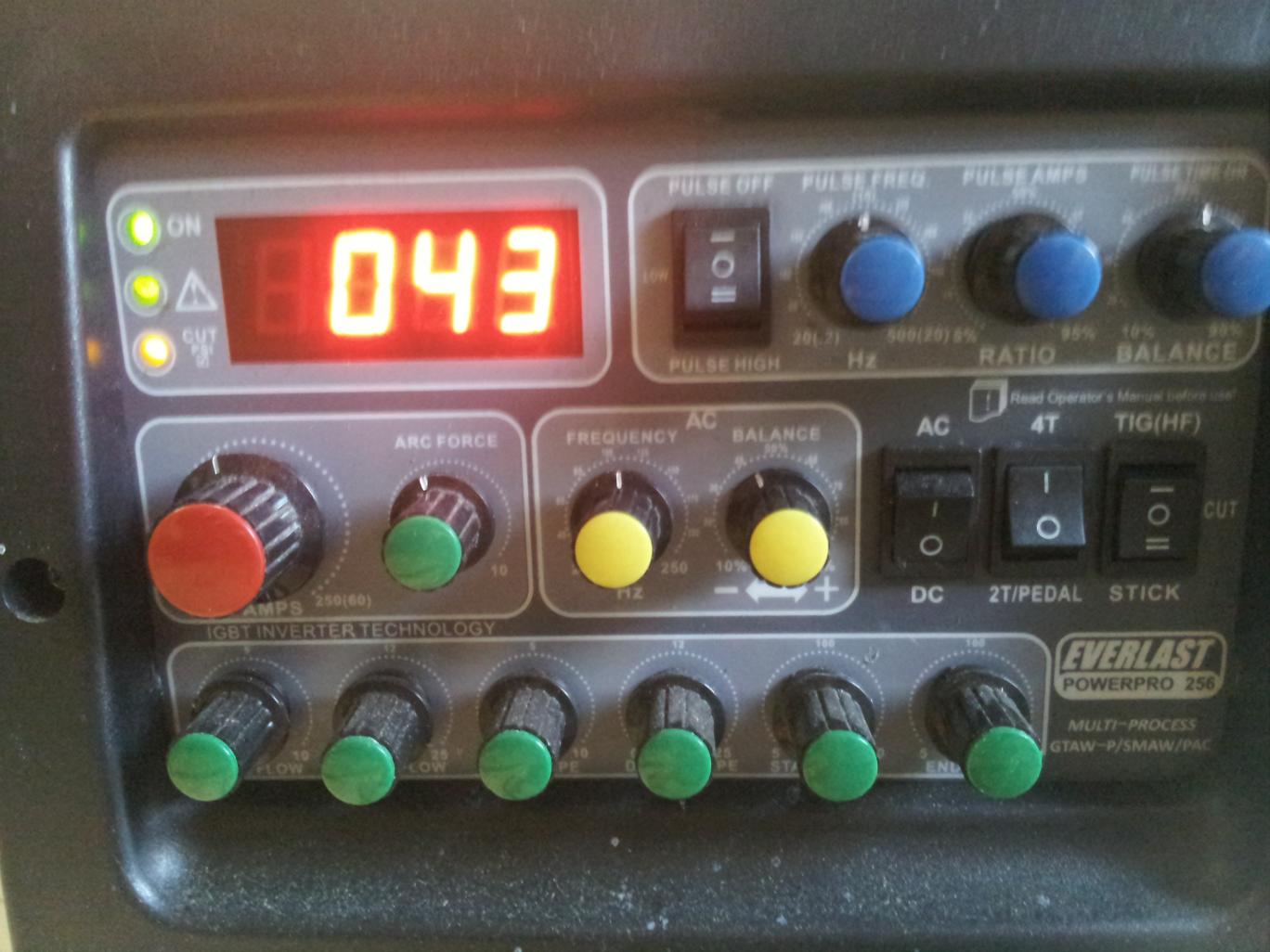 The only other odd thing I noticed was while doing Tig, the Over Current/Overheat lamp would come one when the machine had been idling for 5-10 minutes. Previous to that I'd done a weld for a couple minutes at 85 Amps. Power-cycling clears there error.