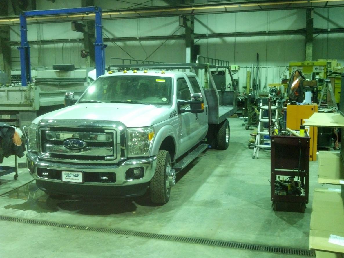 About 2 days after taking delivery of a 2014 F350, the owner decided that he wanted to put a flatbed on it (should have ordered a chassis cab, grrrrrr.) My boss passed the project on to me. 8' x 10', and the headache rack to follow the cab body lines.