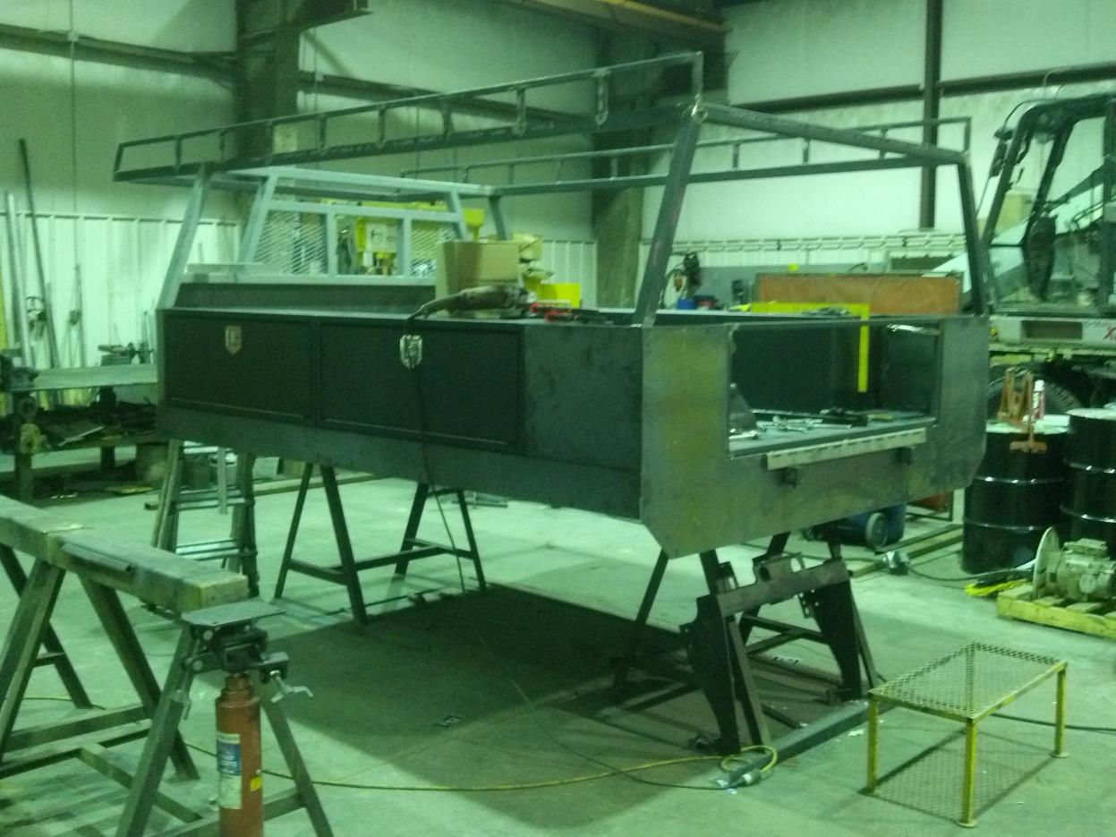 About 2 days after taking delivery of a 2014 F350, the owner decided that he wanted to put a flatbed on it (should have ordered a chassis cab, grrrrrr.) My boss passed the project on to me. 8' x 10', and the headache rack to follow the cab body lines.