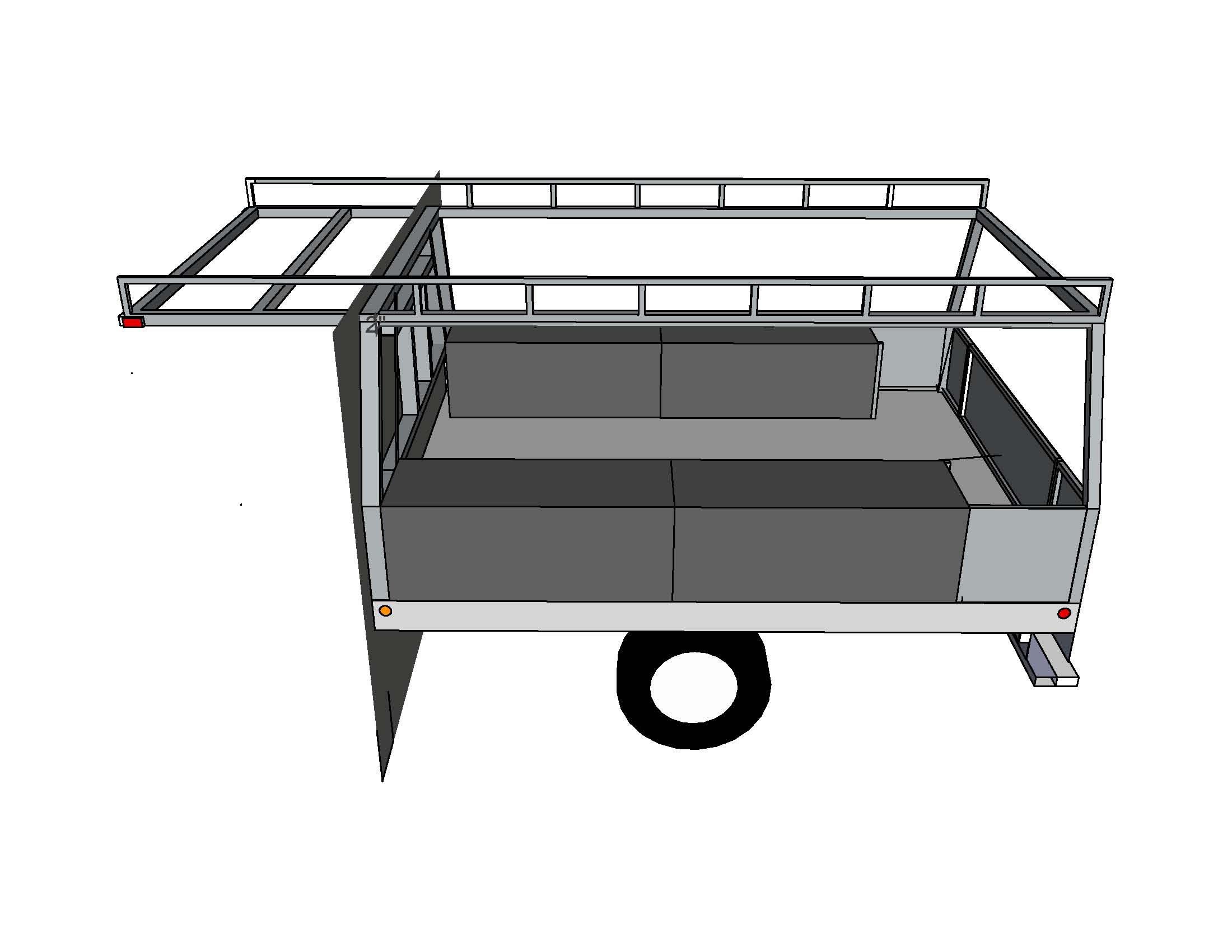 With the help of SketchUp 8, I was able to design the entire thing from the frame up. If you do not have a CAD program, I highly recommend Sketchup. Angles, dimentions, 3D view and ability to rotate around to get different views.