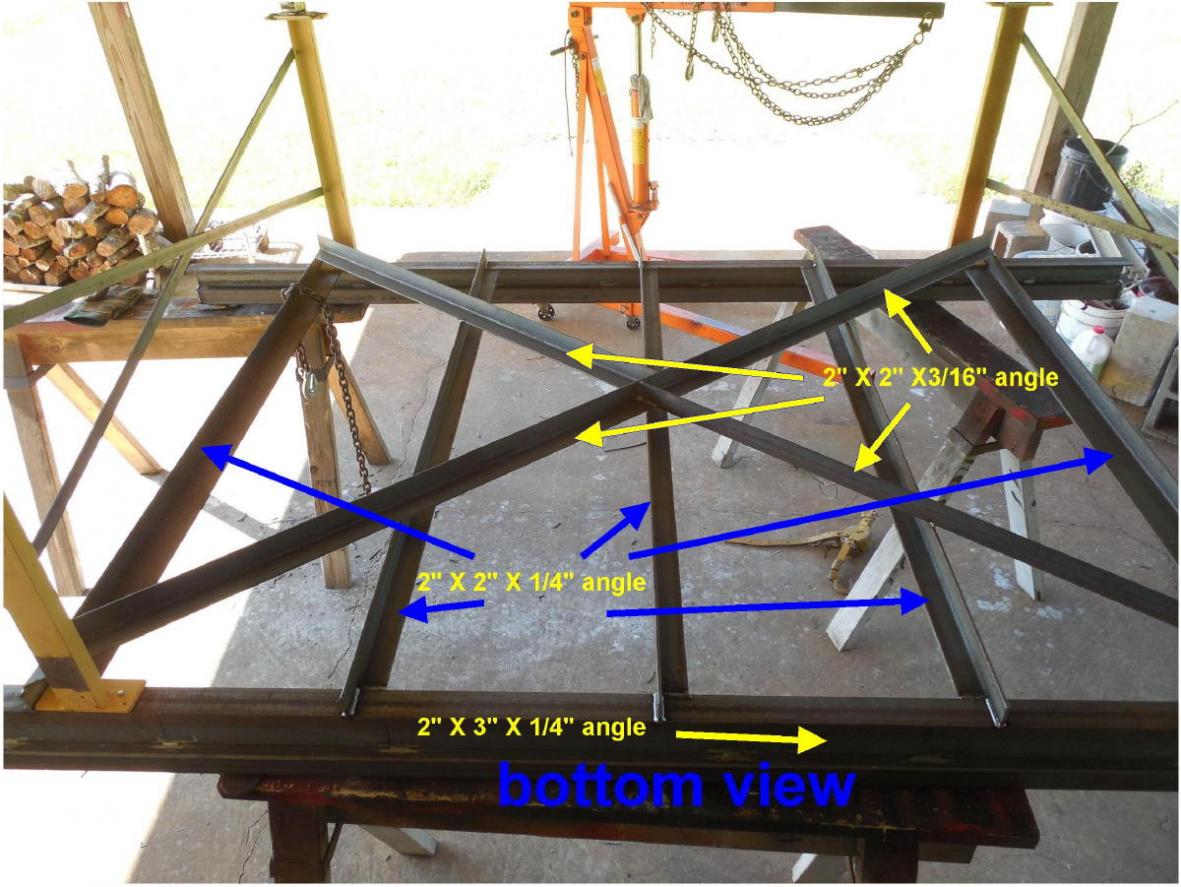 Pictures attached are of the 4X4 completed and the 4X8 base frame next to it. Pile of scrapes after cutting parts for table (1/4" steel) that I sold with some of the plans in next post.