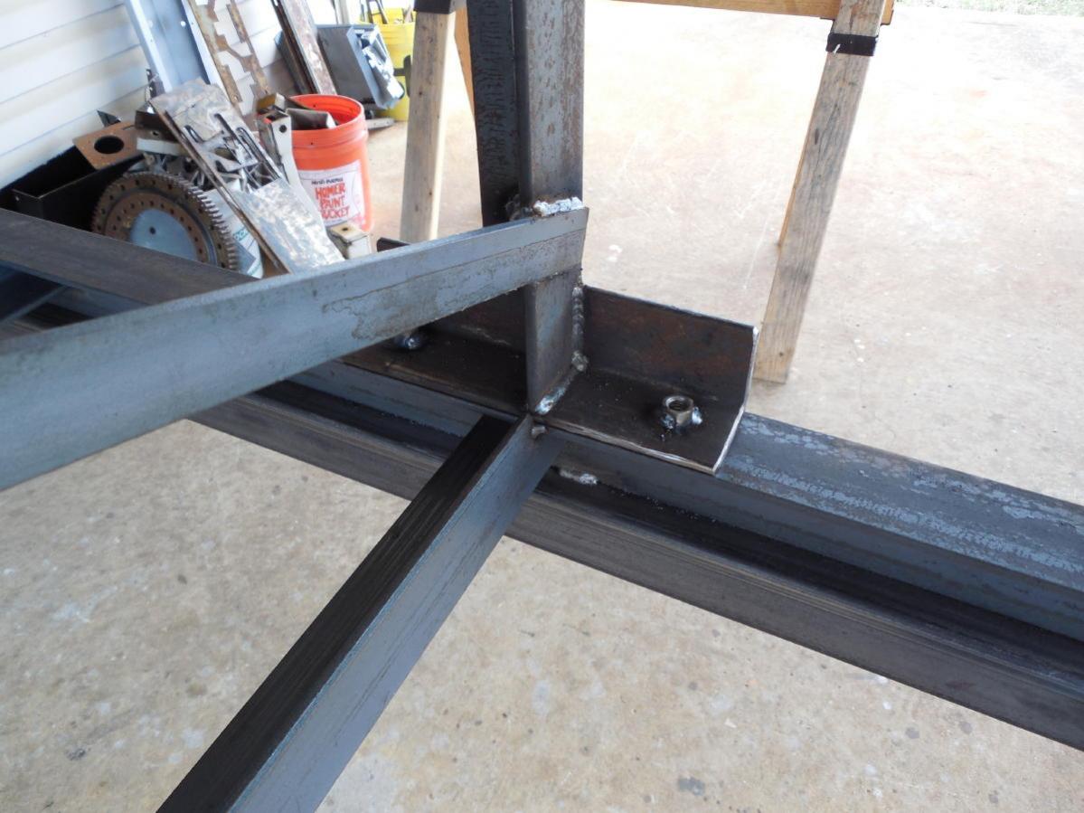 Pictures attached are of the 4X4 completed and the 4X8 base frame next to it. Pile of scrapes after cutting parts for table (1/4" steel) that I sold with some of the plans in next post.