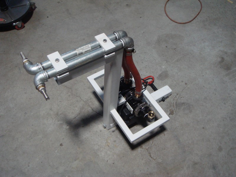 I made a wedge that can be snugged up, so it removes all the slack in the hitch. I've done the same for a number of hitch mounted racks and devices, that I don't want bouncing around. It's much like the system to tighten the gooseneck on an old bicycle. A small cage to protect the valves and an adjustable place to mount the nozzles.