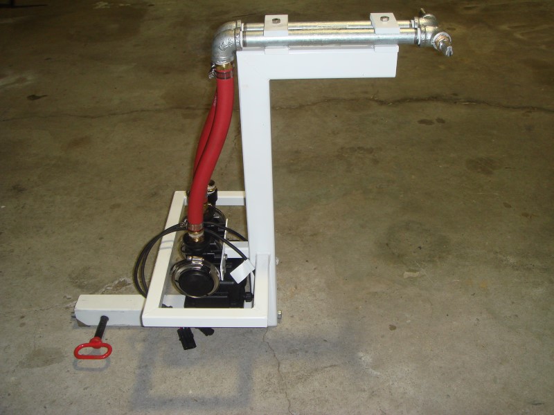I made a wedge that can be snugged up, so it removes all the slack in the hitch. I've done the same for a number of hitch mounted racks and devices, that I don't want bouncing around. It's much like the system to tighten the gooseneck on an old bicycle. A small cage to protect the valves and an adjustable place to mount the nozzles.