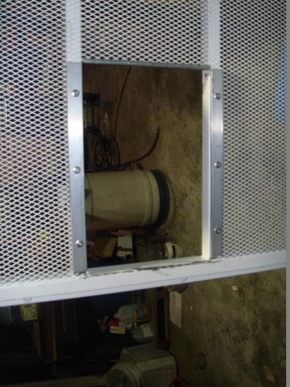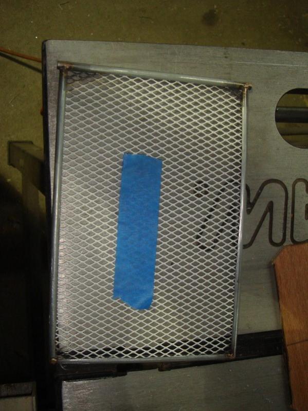 Cut out a section of screen and made a small frame for it by slitting some 3/16" steel brake line with a small cut-off wheel then notching it to fold around the piece of removed screen. I also used a small piece, to cover the upper edge of the hole. Squeezed the tubing to close up the slit and clamp on to the screen. TIG brazed the cuts in the corners, and the upper tube on. 8 amps did the job with silicone bronze. Used some aluminum strip to cover the cut edges on the sides, held on with a few rivets.