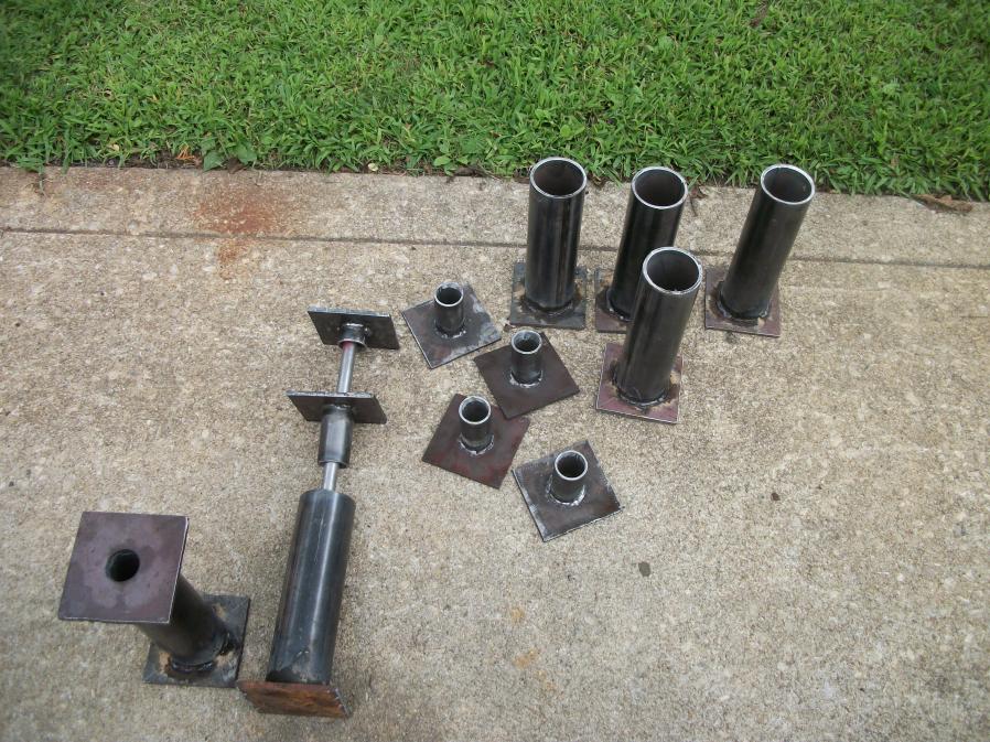 Welded the top nuts to the threaded rod today. Also, added a wider base plate to the first few under-engineered examples. Nice to have this, "job to do the job" effort completed.