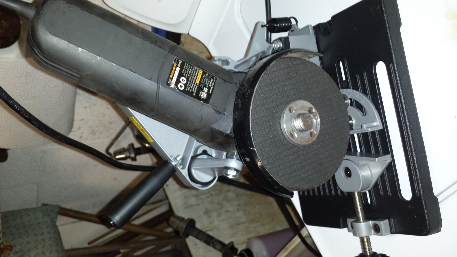 Not bad. Showed up today, and is a mix of cast iron and aluminum. The iron base gives it enough weight that it sits on a bench without wanting to fall over at the slightest touch. The vise jaws are kinda short, but that is needed to give good clearance. Lots of adjustments, so I would imagine almost any grinder can be mounted, as long as it has threaded holes for side handles. It came with 10mm bolts which fit Hitachi and others, along with 8mm for DeWalt and others, and 6mm for ?. If you have a really old made in the USA grinder, you might have to supply your own USS/SAE bolts. The fit of most parts are sloppy, but that is both good and bad. With some tweaking you should be able to get it adjusted to cut true with almost any grinder, even if things are not all machined square. I have yet to use a square and indicator to make any fine adjustments, and just eyeballed it for now, but I can see that there is plenty of room to get it all dialed in. The added guard is just plastic, so I didn't bother to use it. Maybe I'll make a metal one if I fit a larger blade. I think a 5" or 6" blade will make it a lot more useful, if this grinder has enough power to drive it. One thing is that I thought that once it was setup, you could remove and replace the grinder for hand use. Well, if you do, you will lose some of your setup. So I think it's best to dedicate a grinder to this. Overall I'm happy with it. I'll have to see how handy it is over time.