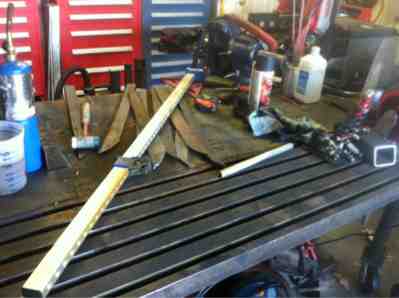 I decided to to a over haul on my welding table, right now it is 3'x6' and I'm gonna make it 3'x4' to gain some space back in the garage one section is 3/8" oiled and pickled plate the other part is a t-slot table from a big knee mill, I am going to incorporate the receiver style accessory ports and possibly cut slots in the plate like the jmr table. All I have done at this point is rough out the legs