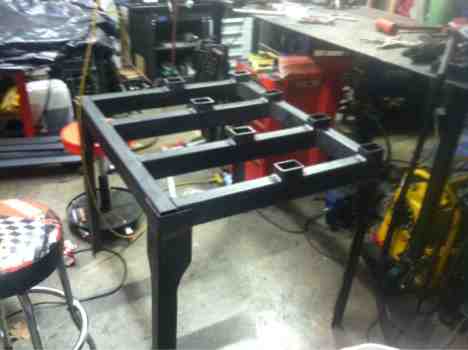 I decided to to a over haul on my welding table, right now it is 3'x6' and I'm gonna make it 3'x4' to gain some space back in the garage one section is 3/8" oiled and pickled plate the other part is a t-slot table from a big knee mill, I am going to incorporate the receiver style accessory ports and possibly cut slots in the plate like the jmr table. All I have done at this point is rough out the legs