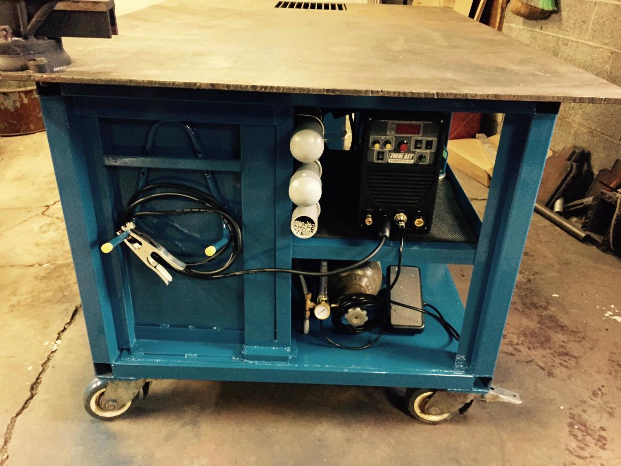 I have a few questions and need some help. Since I recently bought my tig welder, I find that I now have he urge to find a home for it in my shop. I originally was going to put it on a cart but found that 95% of my tig welding is done on my table.