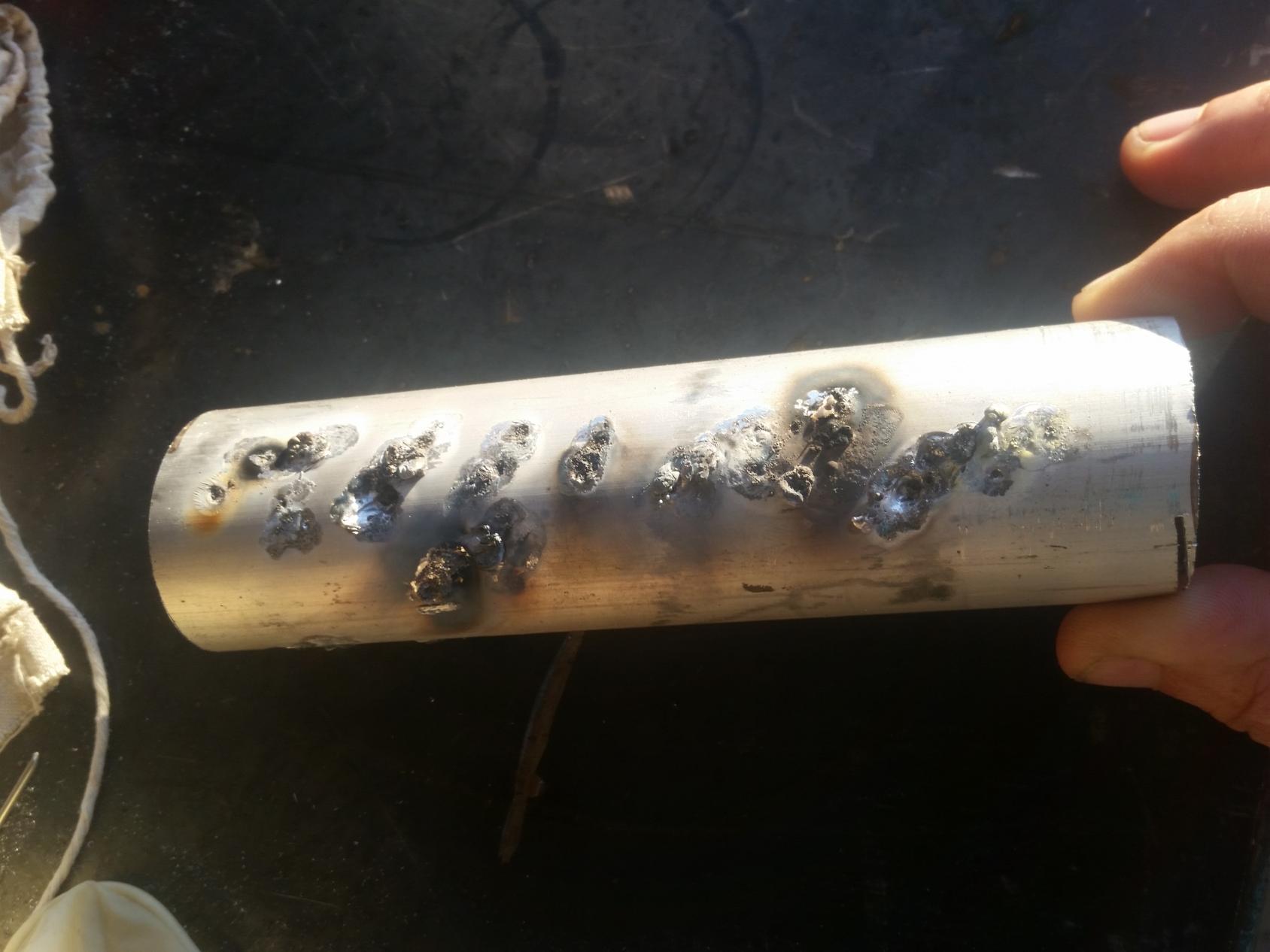 I have tried gold, orange, red and black 3/32 tungsten and all have the same result. The aluminum pits, turns black, and melts away in an overheated mess before a clear puddle forms. I have tried turning the balance to 80% EN which does nothing, to 80% EP which just balls up the tungsten and makes it run away from the part. I have tried the lowest frequency setting up to the highest. It's a relatively new bottle of argon, so I guess it could be bad gas, but like stated, I can get a nice workable puddle with green tungsten using this tank of gas. I have tried no cleaning, wire brush cleaning, and wire brush plus acetone cleaning. Results don't change at all.