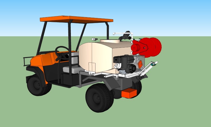 Yet another Kubotoa RTV conversion. This one is a little different. Larger tank than last time and everything mounted up higher for more destructive areas. Found some real aggressive tires to give it some more bite, too.