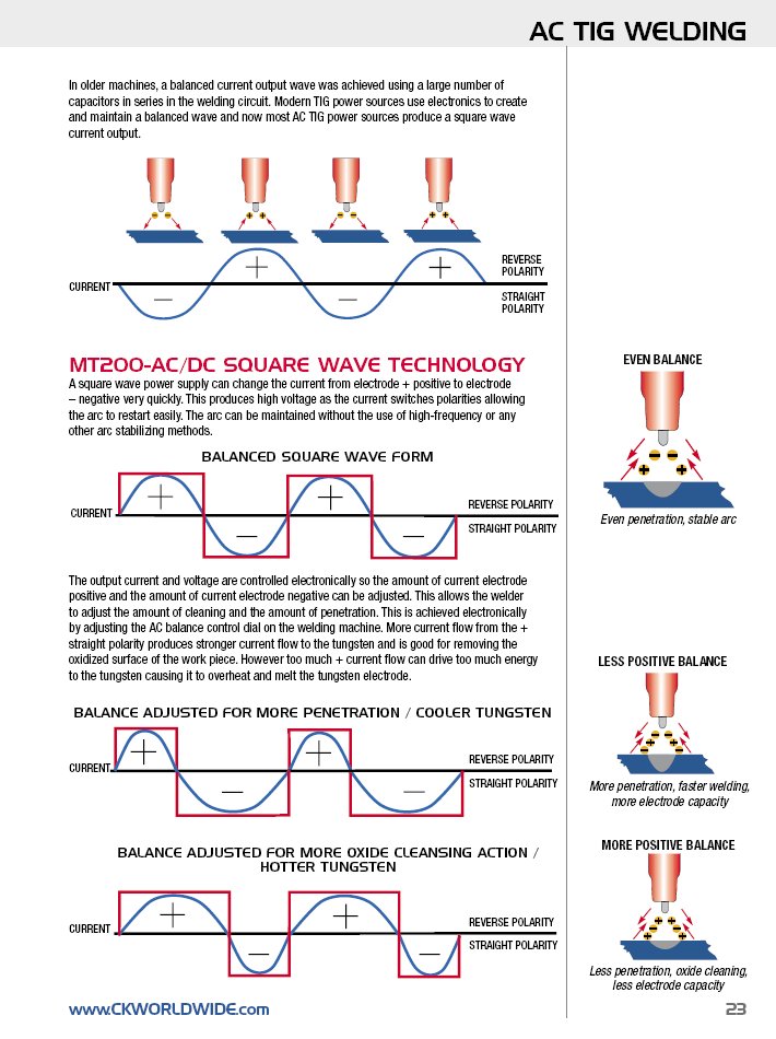 My old welder was physically switched from AC - DC - DC reverse. With this 255 EXT;DC TIG, the torch is negative with positive ground - and with AC TIG, the torch goes to positive - with negative ground. Correct? But if you were only welding with AC TIG - why would it matter if the torch was hooked to negative? High frequency arc start?