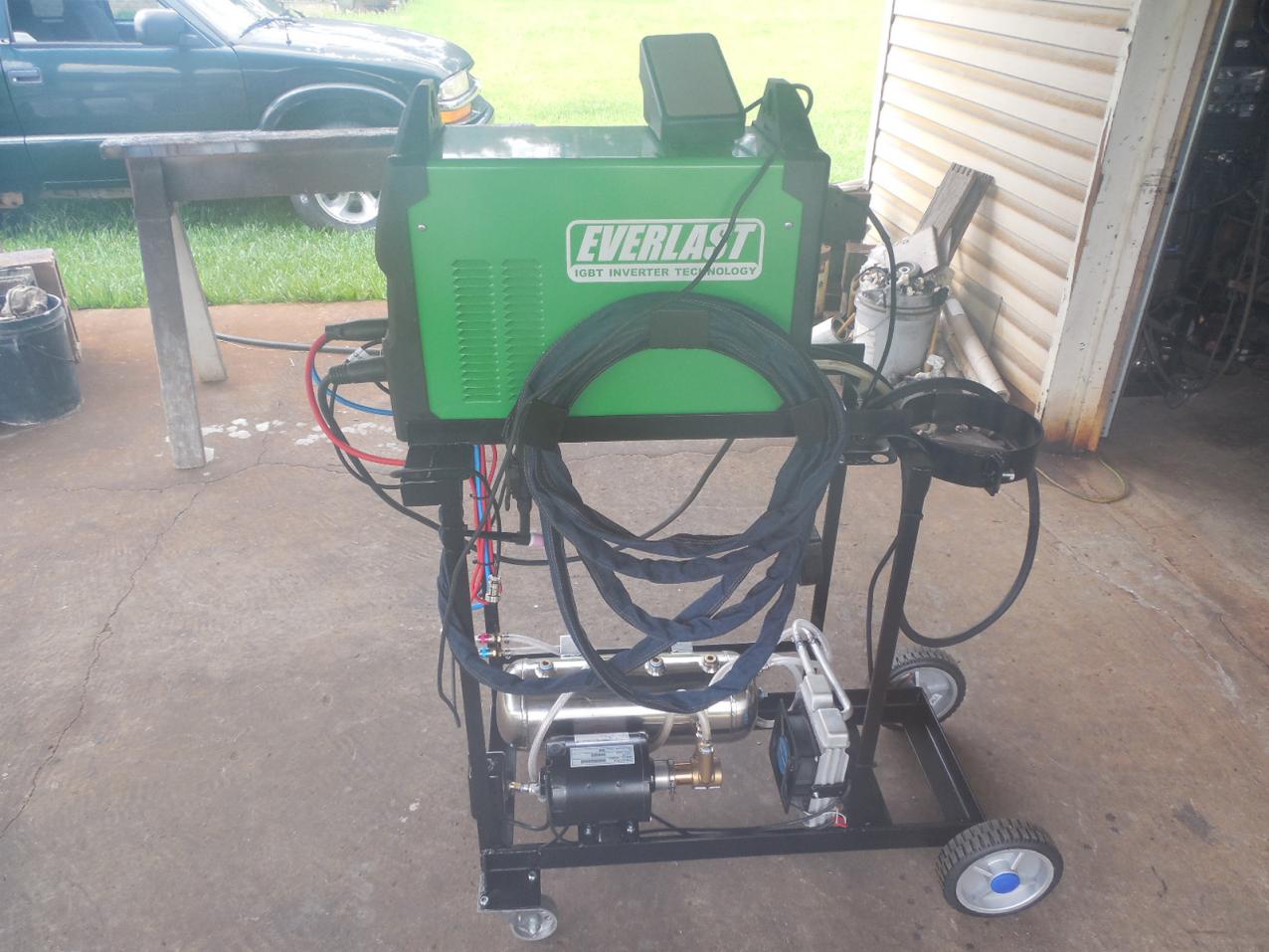 New water-cooler, and roll around cart, you add Argon cylinder and you’re ready to weld Steel or Aluminum