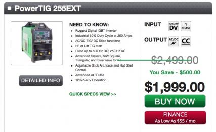 So, I'll recommend looking at higher amperage TIG units, in order to get 100% duty-cycle at 200 or more amps. You'll undoubtedly want a water cooler too.