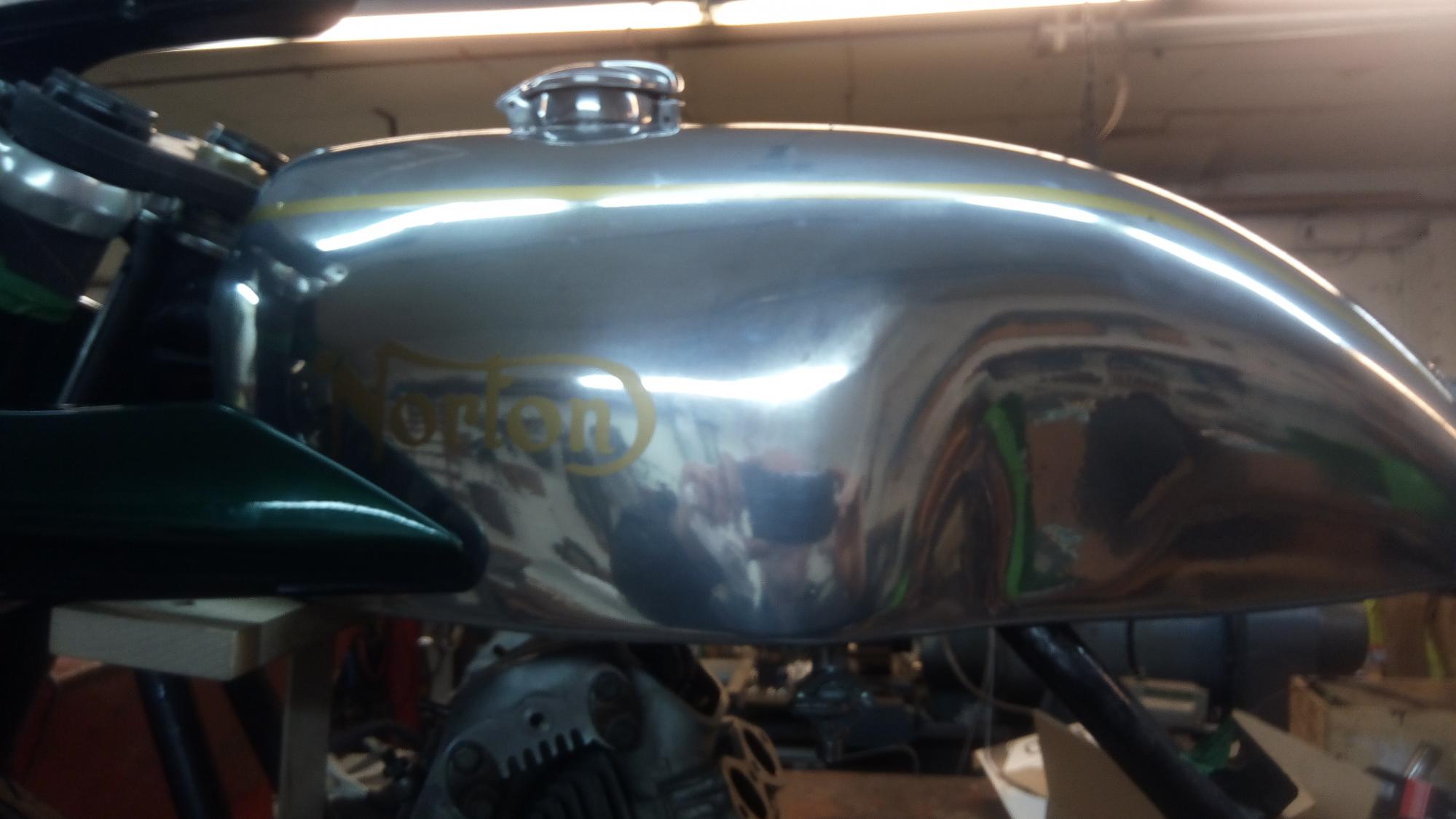 I recently built this tank for a Norton project bike. The plan is to use a Triumph Thruxton fairing at front, so the fuel tank top skin had to match a Thruxton R shape. The bottom has to be made to fit the Norton Commando.