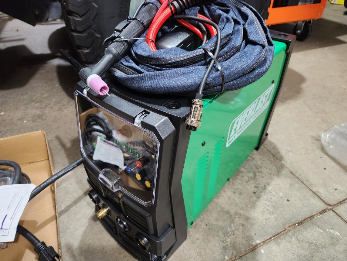 After a number of years keeping watch on tig welders finally pulled the trigger on a 200DV. Been almost 10 years since I have tig welded and it showsIn the process of making the welding cart one is obligated to build when adding a new welder. Made of 2" 11ga square tubing and 2"x1/8" angle. I spaced the angle on the table over the welder for clamps, plan to add a flip up table as well to make larger and still retain a small foot print when not in use.