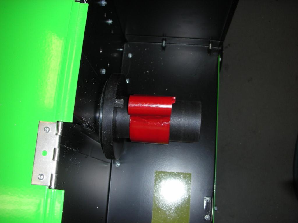 The wire spool holder in the IMIg250P is designed for a 30-44 l/b roll. Though the inside diameter of the 10-12 l/b roll is the same it will not fit properly due to the difference in width. I fashioned this adaptor out of some PVC pipe to fit behind the roll and fit over the tension pin and lock into the notch on the roll, holding the proper tension on the wire roll and alignment with the wire feeder. It’s pretty crude, but doesn’t show, I painted this one red so it shows up, and your partner (or you) won’t try to install the large roll and wonder why it won’t fit.