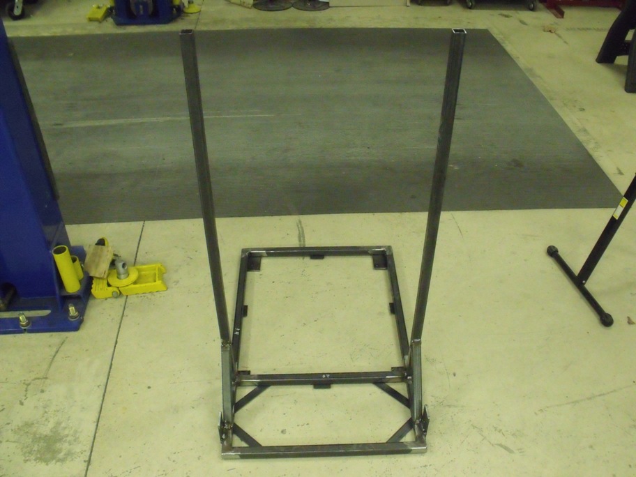 This is the start of my welding cart, It will have three shelves. The bottom for storage, or maybe a drawer. the middle will hold my Mitec plasma cutter and a future W300 water cooler and the top will hold me 250ex tig and I-Mig 200, there is room for two bottles of any size I may need. I will be adding holders for my cables, peddle and filler rod.