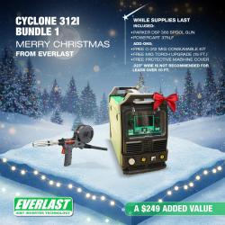The Cyclone 312i is a powerful and compact roll-around MIG. A common requested item for this welder though is a spool gun. Everlast has created this special Parker DSP 360 Spool Gun package to increase it's versatility and reach while welding aluminum. This package includes the Cyclone 312i, Parker DSP 360 Spool Gun and PowerCart 375LF.