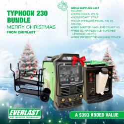 The Typhoon 230 is leading the way in the TIG welding industry with innovative and new features. To compliment this, Everlast has created a nearly perfect package so you can hit the ground running. This package includes the stackable PowerCool 375 water cooler, the deluxe PowerCart 375LF, and the NOVA wireless pedal. Just add shielding gas, tungsten and filler wire and you are ready to weld.
